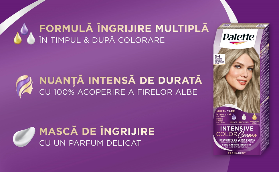 Vopsea de par permanenta Palette Intensive Color Creme, 9-1 Blond Extra Deschis Rece, 110 ml